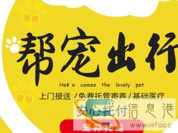 宠邦宠物托运公司从事托运行业六年,**已遍布全国各地,只要有飞机场火车站汽车站宠邦都能将您的爱宠安全送达。目前宠邦已为数十万宠友提供过托运服务,已有猫狗,鼠类,鸽子,鱼类等多种宠物托运经验并设有专业的医疗护理安全健康有保障。我们的出行方式:1.飞机空运 (全国直飞3-4小时可达)2.火车运输3.汽车运输期待您将爱宠托付于我们。